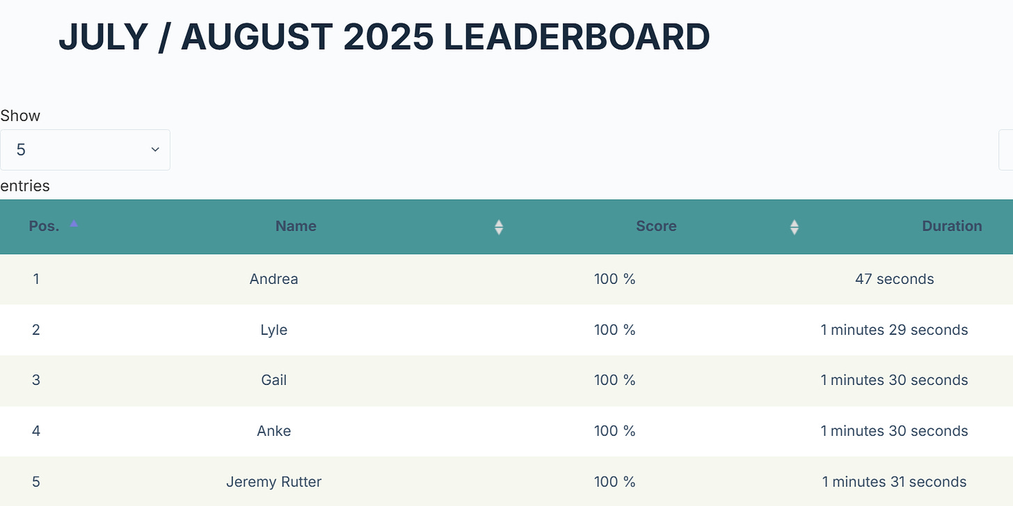 We’ve adjusted the quiz leaderboard: instead of closing at the end of July, the current race now runs through August – making things a little more exciting. From September onward, we’ll return to monthly leaderboards.