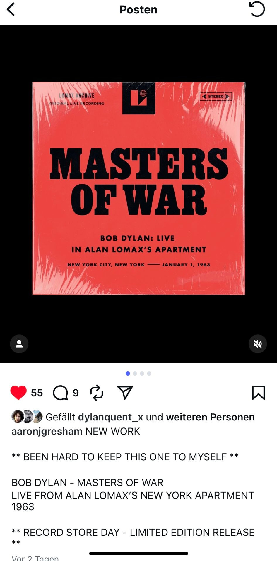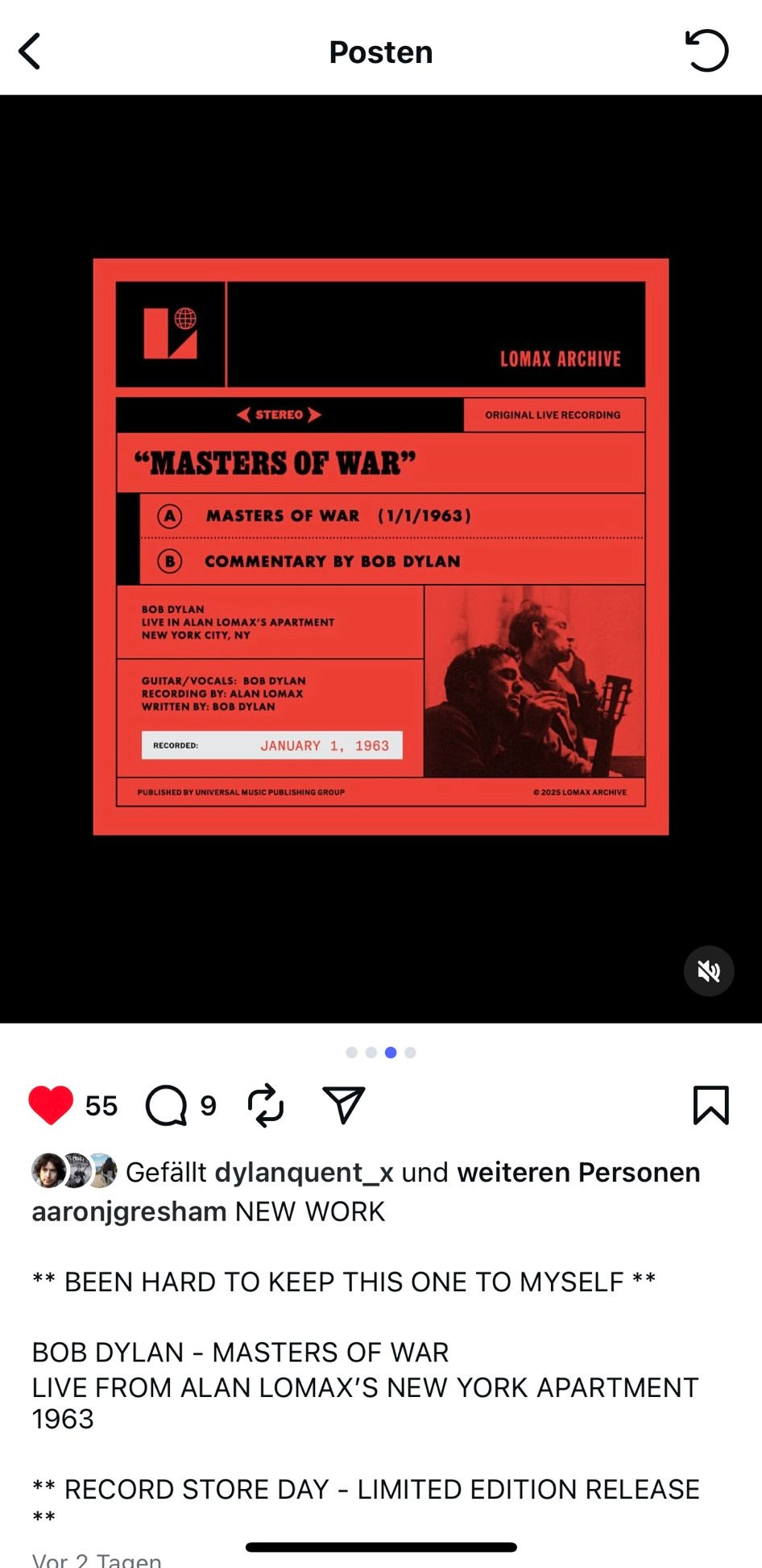 Another busy week in the Dylan world. Record Store Day 2025 brings two major items—the original version of Freewheelin’ Bob Dylan and a rare “Masters of War” recording from Alan Lomax’s apartment—while Dylan’s TikTok teases Bootleg Series Vol. 18. Below you’ll also find our Brussels lunch update, new Carol Casper clips, the Outlaw Tour highlights, and a fresh Spare Ticket Corner.