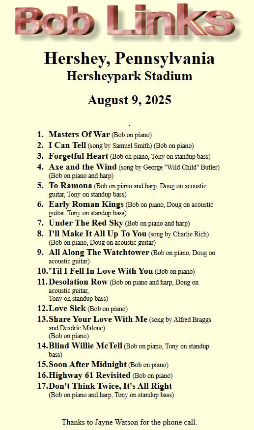 “Soon After Midnight” re‑entered the set last night in Hershey, leaving Positively 4th Street out again for now: